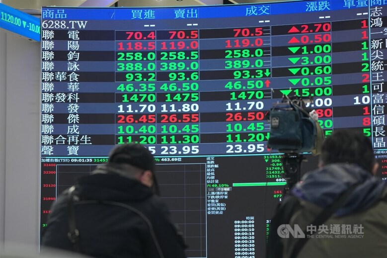 (中央社台北30日電)台股今天在電子、金融和傳統產業股同步走弱,加權指數收在32063.75點,下跌472.52點,成交值新台幣9071.11億元。台股本週仍上漲102.24點,1月累計上漲3100.15點。