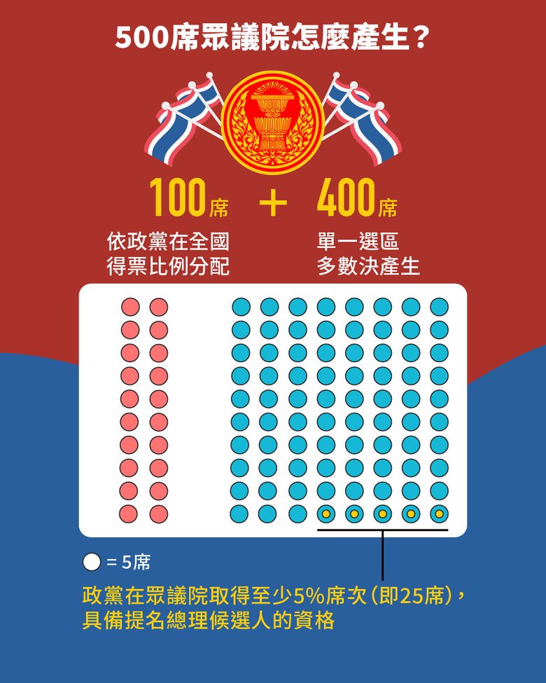 泰國於2月8日舉行國會大選,本次選舉被視為舊勢力與改革派之戰。選情攸關政府組建權與國家發展方向。在現任總理阿努廷提前解散國會,距離上次大選僅隔3年的背景下,超過5300萬名選民將投票選出500席眾議院議員,並同步舉行公投。本文將從泰國選制、世代選民結構、公投選制,到熱門總理候選人等主題來認識本次泰國大選。(關鍵評論網製圖)
