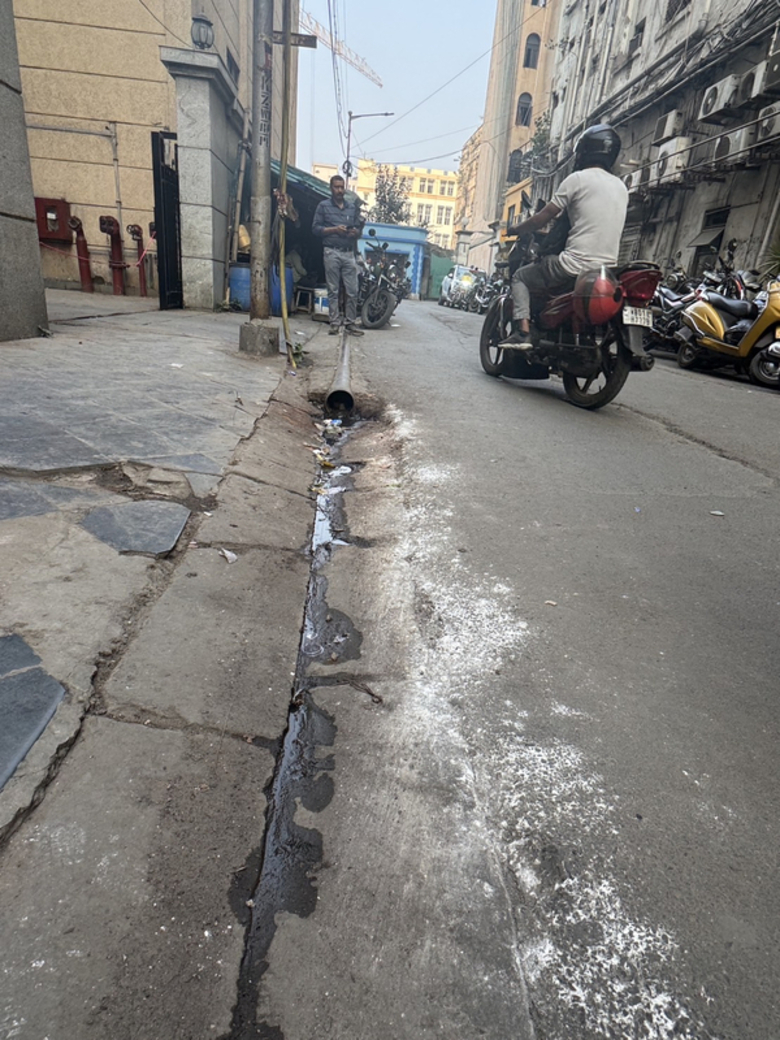 印度西孟加拉爆發立百病毒疫情,首府加爾各答情況大致良好,但住家、辦公大樓外圍有零星以白色消毒粉清消過的痕跡。(民眾提供,中央社記者李晉緯新德里傳真)