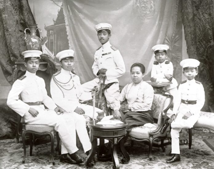 拉瑪六世與母親薩瓦帕‧彭詩莉王后,以及親兄弟們,拉瑪七世靠在最後面的椅子上