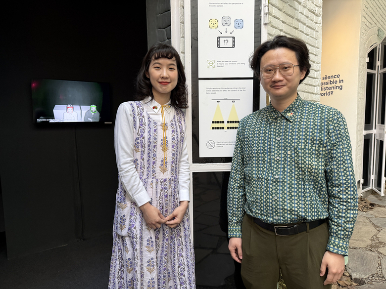「陽春麵」的作品「探索與剝削」,以AI互動電影形式,根據觀眾的情感反應,即時改變敘事路徑,探討推薦(演算法)、內容創作與社會分裂之間的結構性問題。