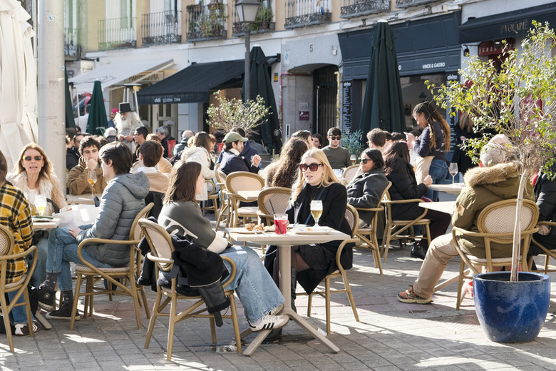 西班牙失業率2025年第4季首次降到10%以下,創紀錄的就業成長帶動家庭購買力復甦,再加上薪資成長超過通貨膨脹,推升了國內消費力,推升2025年經濟成長率達到2.8%,成長速度高於歐元區的1.5%。圖為馬德里一處滿座的餐廳露天座,侍者正在為客人服務點餐。(中央社記者胡家綺馬德里攝)