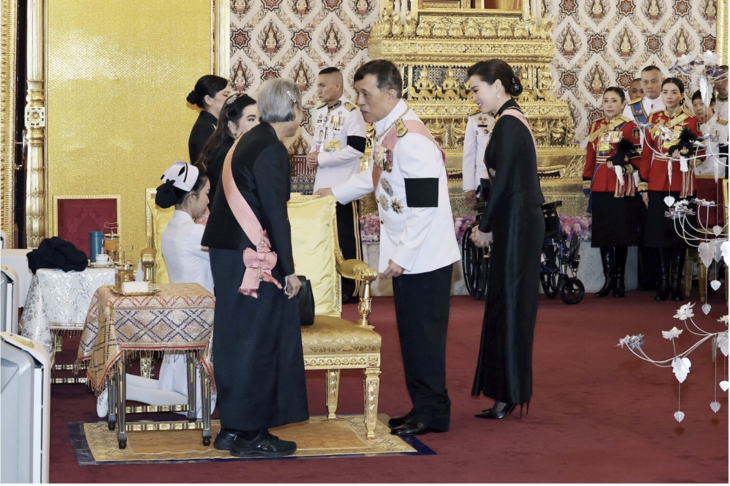 整場百日追思儀式依古制完成後,國王與王后再度向靈柩行禮,並接受在場官員與皇室成員致敬,隨後乘御車離開大皇宮。相關佛事象徵皇室慎終追遠,並依傳統禮儀表達對已故王太后的追思與尊崇。