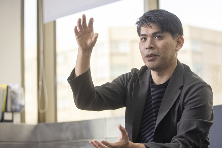 日本國際記者舛友雄大接受中央社專訪,分析中國人的「潤日」現象。(中央社記者鄭清元攝)
