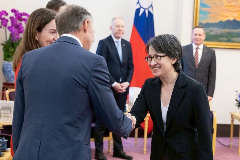 副總統蕭美琴5日接見「中北歐國家國會議員訪問團」時表示,台灣持續強化民主與安全防衛,致力確保人民共享繁榮,並盼與理念相近夥伴攜手同行,深化合作。(總統府提供,中央社記者溫貴香傳真)
