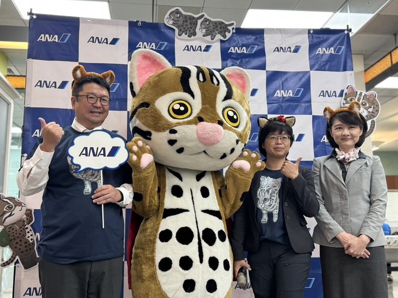 ANA表示,石虎保育大使阿虎除了現身活動攤位外,今天搭乘ANA從松山出發前往羽田的航班旅客,都可拿到特製石虎行李飄帶,希望提升旅客對石虎生態關注,今天NH851航班也剛好使用呼應永續的彩繪機載客。