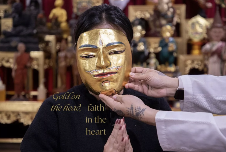 (台泰時報2月7日電)位於泰國暖武里府邦波通縣的一處儀式中心,近來吸引不少民眾前往參與名為「那那通」(Na Nathong)的傳統祈福儀式。該儀式由僧侶或法師在參與者臉部貼上金箔,民間相信可提升運勢、財富與個人魅力,並展現結合古老信仰與蘭納藝術的文化特色。