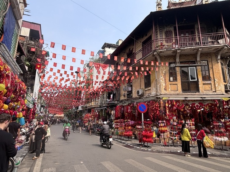 36古街仍保留許多廟宇以及門面狹窄但進深長的獨特「管屋」。隨著越語稱之為Tết的農曆春節腳步接近,舊街區化身河內版「迪化街」,過節氛圍濃厚,金紅閃爍喜氣洋洋,成為當地人採買糖果、蜜餞、裝飾、過年禮盒的好去處,人車絡繹不絕。