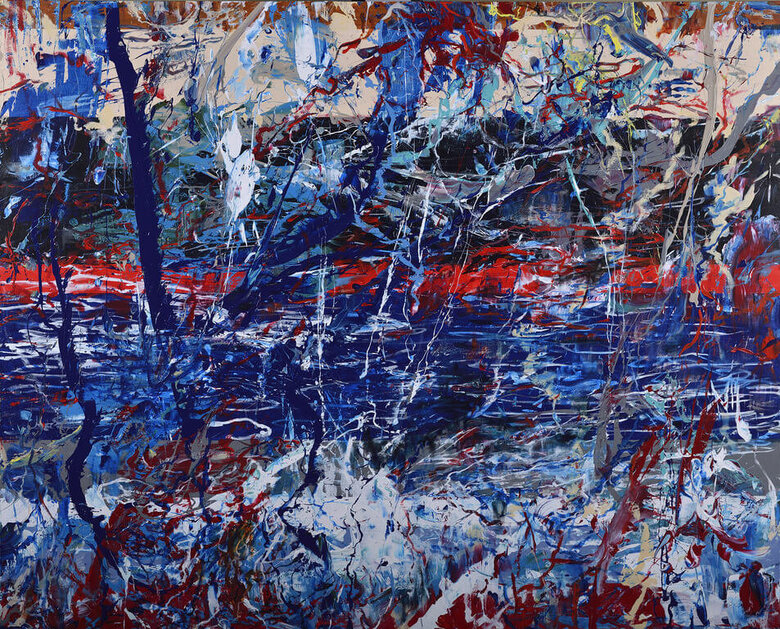 藝術家薛保瑕作品「應對–達悟族」以抽象語彙介入對原民文化的思考,在畫布上構建出多層次的對話空間,體現台灣多元文化交織的複雜性,此作將於英國時間18日正式入藏大英博物館。(耿畫廊提供,中央社記者王寶兒傳真)