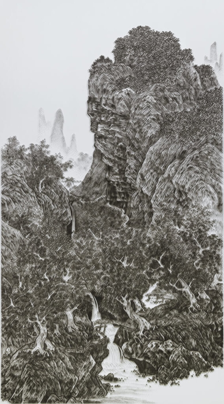 大英博物館將在英國時間18日入藏3件台灣當代藝術作品,其中之一為藝術家陳浚豪的「臨摹宋范寬『秋林飛瀑圖』」。(耿畫廊提供,中央社記者王寶兒傳真)