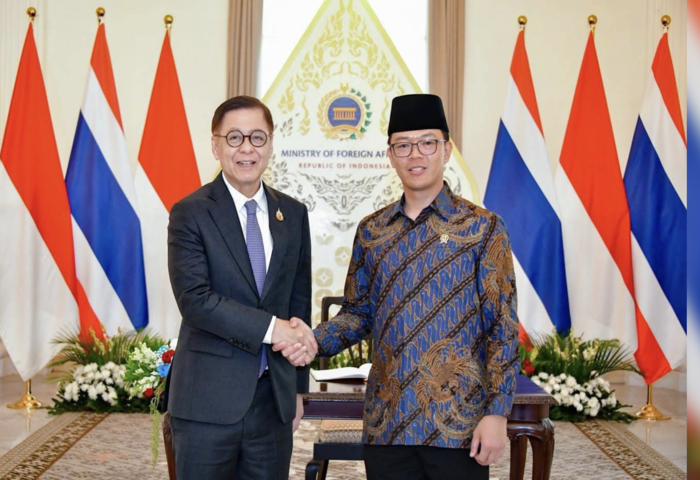 (台泰時報10月7日電)泰國外交部長西哈薩克(Sihasak Phuangketkeow)6日在印尼雅加達與印尼外交部長蘇基約諾(Sugiono)舉行工作午宴會談。雙方重申泰印關係的戰略重要性,並歡迎兩國於今年5月印尼總統訪泰期間正式將雙邊關係提升為「戰略夥伴關係」。
