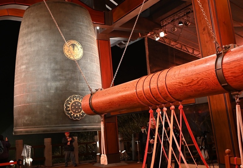 法鼓山每年除夕會敲響鎮山之寶法華鐘108響,象徵破除過去、現在、未來的108種煩惱,迎接嶄新一年。(中央社記者曹亞沿攝)