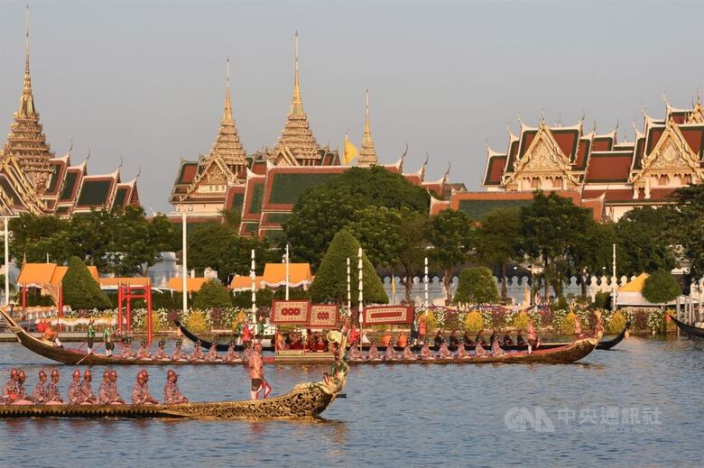 圖為泰國曼谷大皇宮前王船遊行景象。(中央社檔案照片)