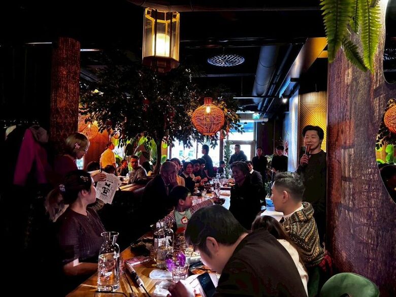 協會會長王珍妮說,餐廳配合農曆新年特別準備了一道滷豬肉,「有一秒回台灣的感覺」,整場活動有吃有玩,摸彩與遊戲穿插進行,氣氛熱鬧。