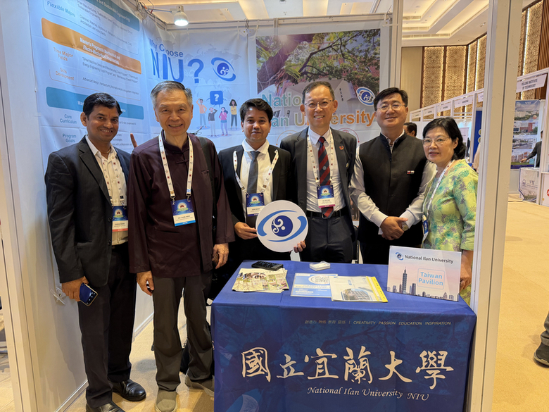 台灣10所學校組團到印度參加高教展,希望招收優秀印度學生到台灣就讀。圖為國立宜蘭大學在高教展的攤位。(中央社記者李晉緯新德里攝)