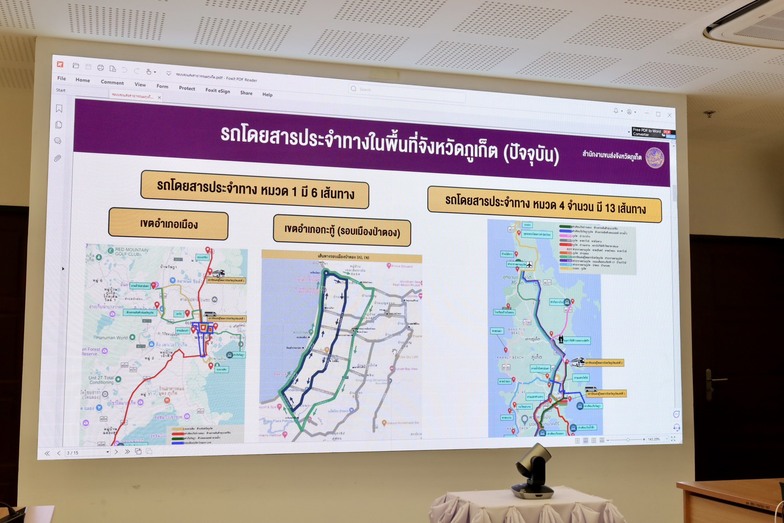 目前普吉府運輸辦公室已與業者合作,於 9 條路線安裝全球定位系統,並完成資料串接。其中市區固定路線 3 條,包括沙攀興—普吉中央百貨、查龍碼頭—超級奇購物中心及拉沙達碼頭—購物中心(水上樂園)。跨區固定路線共 13 條,已完成 6 條系統串接,包括普吉—塔查猜、普吉機場—蘇林海灘—巴東海灘—拉威海灘—朋貼海角,以及普吉—卡隆—卡塔諾伊(雙條車)等路線。