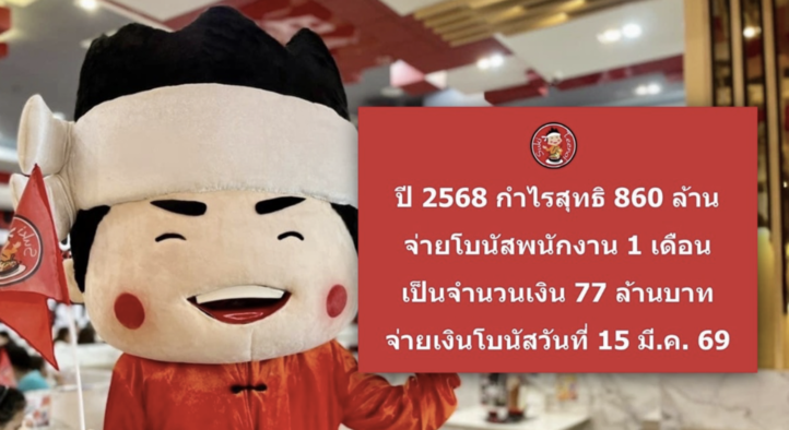 (台泰時報2月25日電)泰國連鎖壽喜燒品牌提利諾(Suki Teenoi)宣布,將於3月15日發放相當於1個月薪資的員工獎金,總額達7700萬泰銖。儘管2025年淨利降至8.6億泰銖,仍決定與員工共享成果。
