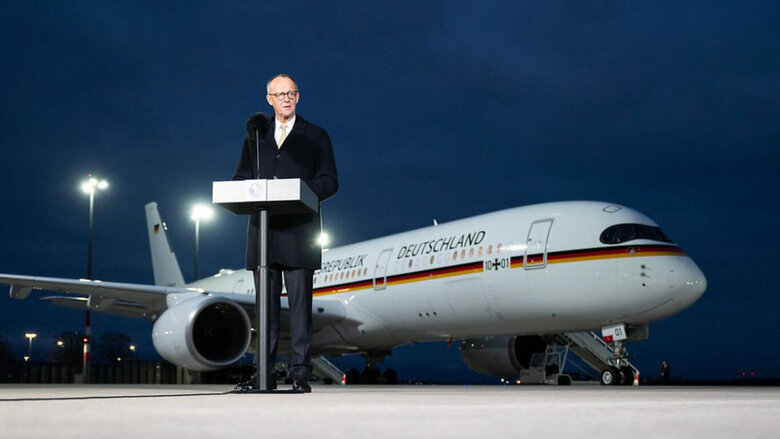 德國總理梅爾茨啟程訪問中國,在政府專機前發表談話說明此行對中政策立場與5個指導原則,並首度就台灣議題表示,將維持一中政策,但具體內涵由德國自行界定。(德國聯邦政府提供,中央社記者林尚縈柏林傳真)