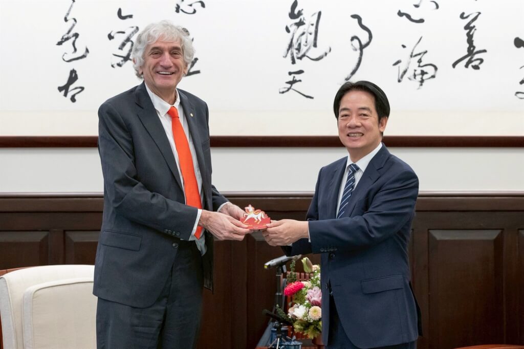 總統賴清德(右)26日接見2025年諾貝爾物理學獎得主約翰.馬丁尼斯博士(左)。(總統府提供)