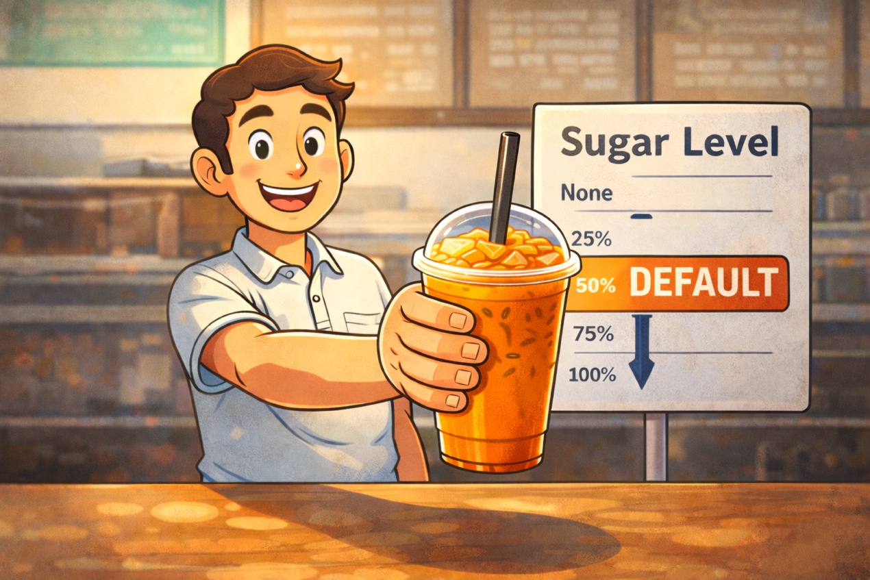 但泰奶的甜,這幾年正被重新討論中。近期泰國衛生部推動減糖倡議,提出以「甜度預設50%(ค่าเริ่มต้น 50%)」做為健康選項,並與多家連鎖飲料品牌合作推廣,其背景正是泰國長期面臨高糖攝取與非傳染性疾病風險的公共衛生挑戰。