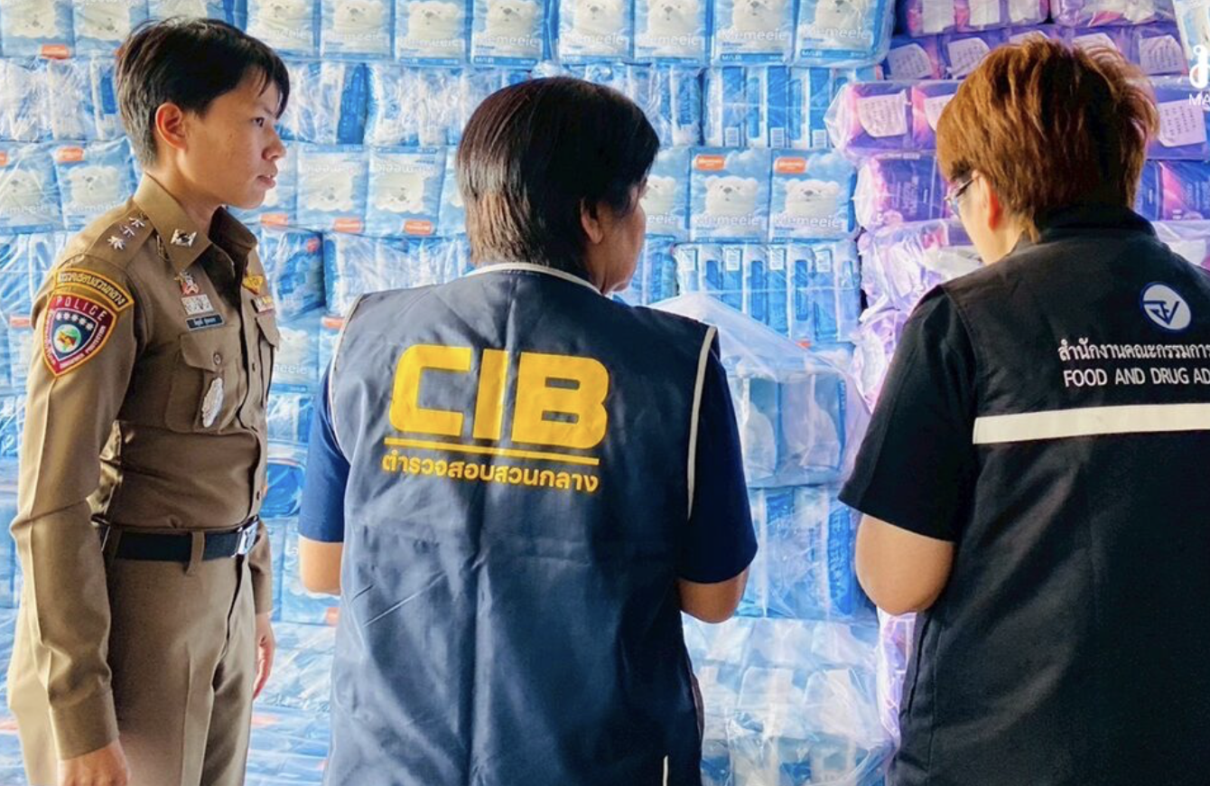 (台泰時報2月28日電)泰國中央調查局(CIB)會同食品藥物管理局(FDA)於2月18日宣布,破獲非法自中國進口並在網路販售之衛生棉倉庫,分別在曼谷與沙沒沙空府查扣未登記與標示不符產品逾120萬件,估計市值約2000萬泰銖。警方指出,相關商品未取得合法登記號碼,部分標籤不符規定,恐增加消費者使用風險。