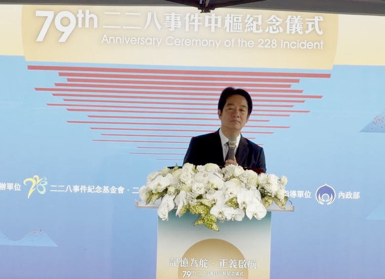 總統賴清德28日南下高雄出席228事件中樞紀念儀式時說,228事件提醒世人歷史不能重演。(中央社記者張已亷攝)