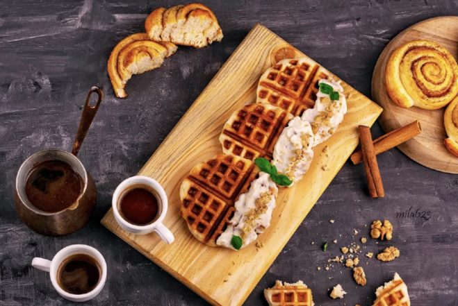 其次為「風味互補或對比」。黑咖啡的苦味可中和高甜度蛋糕,降低甜膩感;帶堅果香的巴西豆適合核桃布朗尼或杏仁餅乾;果香明顯的衣索比亞或肯亞咖啡,則能襯托莓果類甜點的清新口感。
