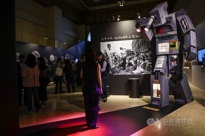 正在中正紀念堂展出的「自由花蕊」,展區入口處一座大型裝置彷彿監視著每一位參觀者,呈現過去人民遭受威權體制監控的意象。(中央社檔案照片)