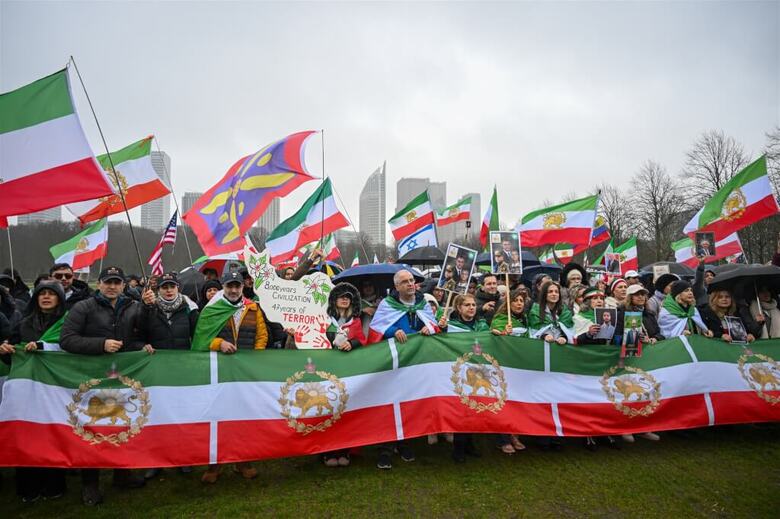 圖為海外伊朗人2月28日在荷蘭海牙抗議伊朗政權。(安納杜魯新聞社)