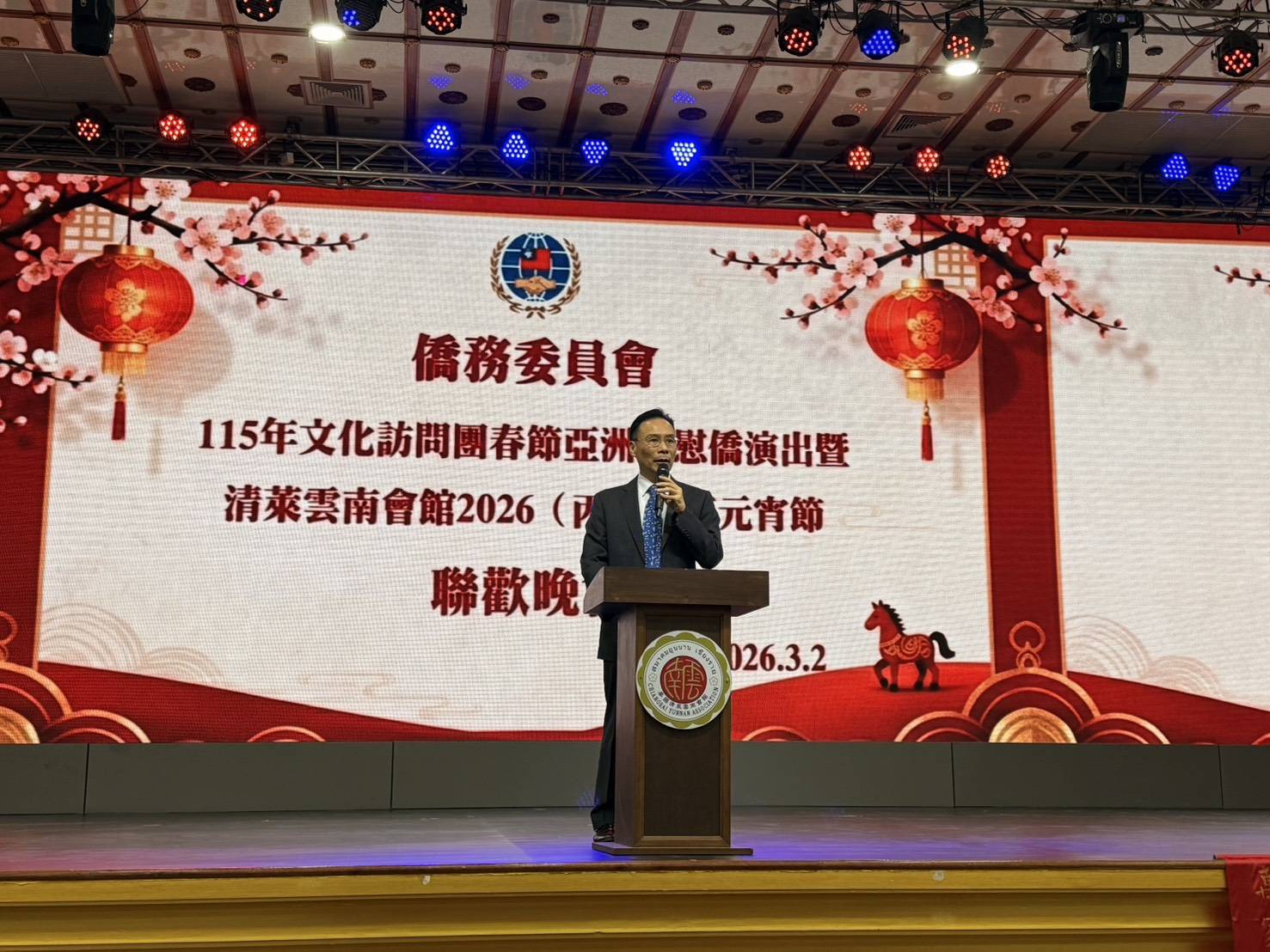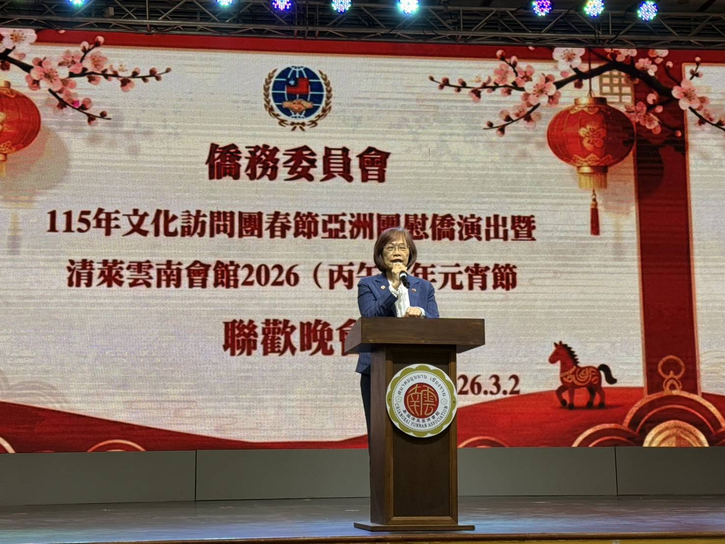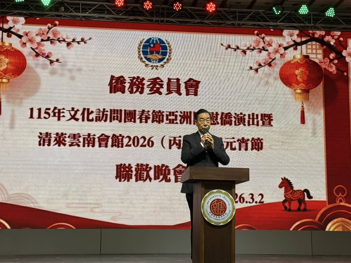 (台泰時報清萊電)元宵佳節燈火團圓,清萊雲南會館昨(2日)晚舉辦元宵節聯歡晚會,並邀請僑務委員會115年春節文化訪問團,臺灣特技團蒞臨演出。台灣駐泰代表處藍夏禮大使親赴清萊出席盛會,與泰北僑胞及地方友人共度佳節,會場座無虛席、掌聲不斷,洋溢濃厚節慶氛圍。