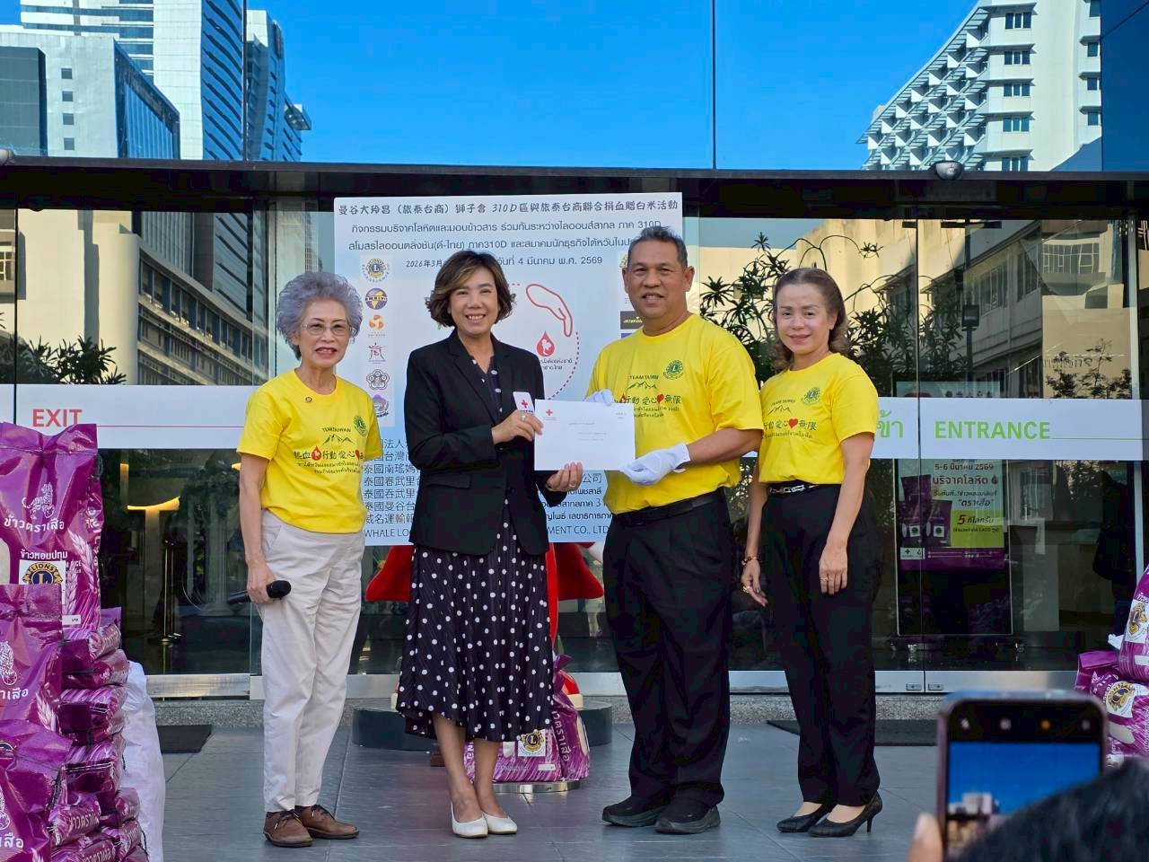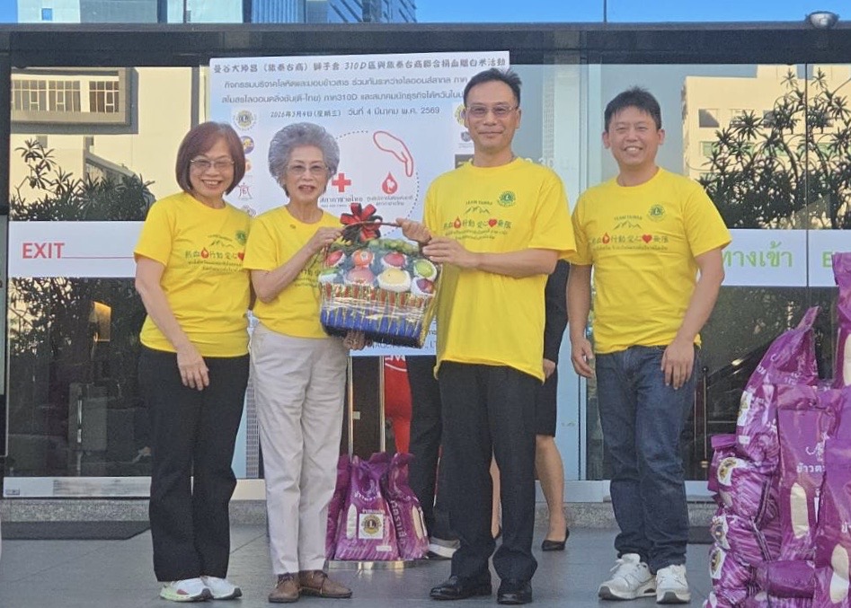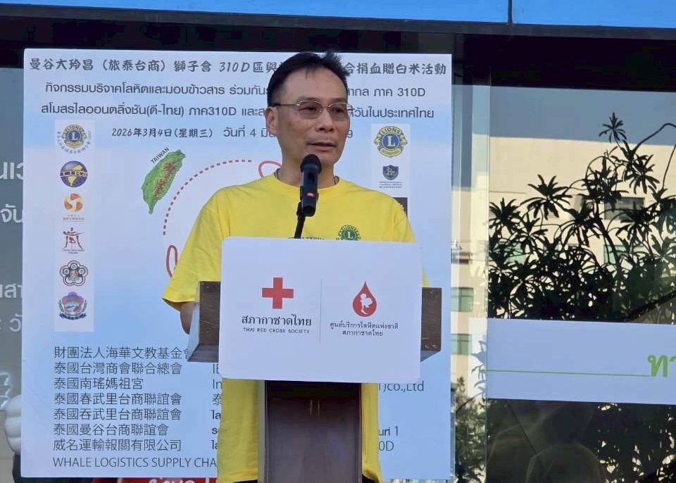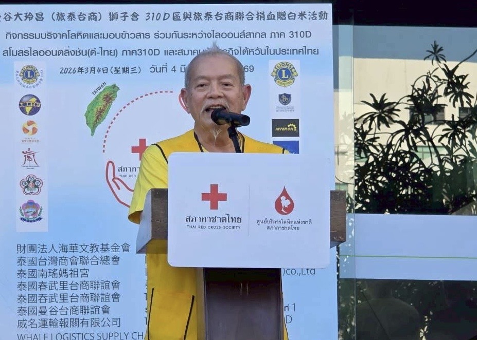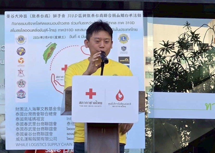 (台泰時報曼谷電)國際獅子會310D區與旅泰台商社群今(4)日下午於泰國紅十字會國家血液中心舉辦「捐血一袋、愛心加倍」公益活動,並捐贈白米1,400包(共7,000公斤),透過捐血與捐米行動回饋社會。活動邀集僑界代表與公益團體共同參與,展現旅泰台灣社群長期投入公益、關懷社會的精神。