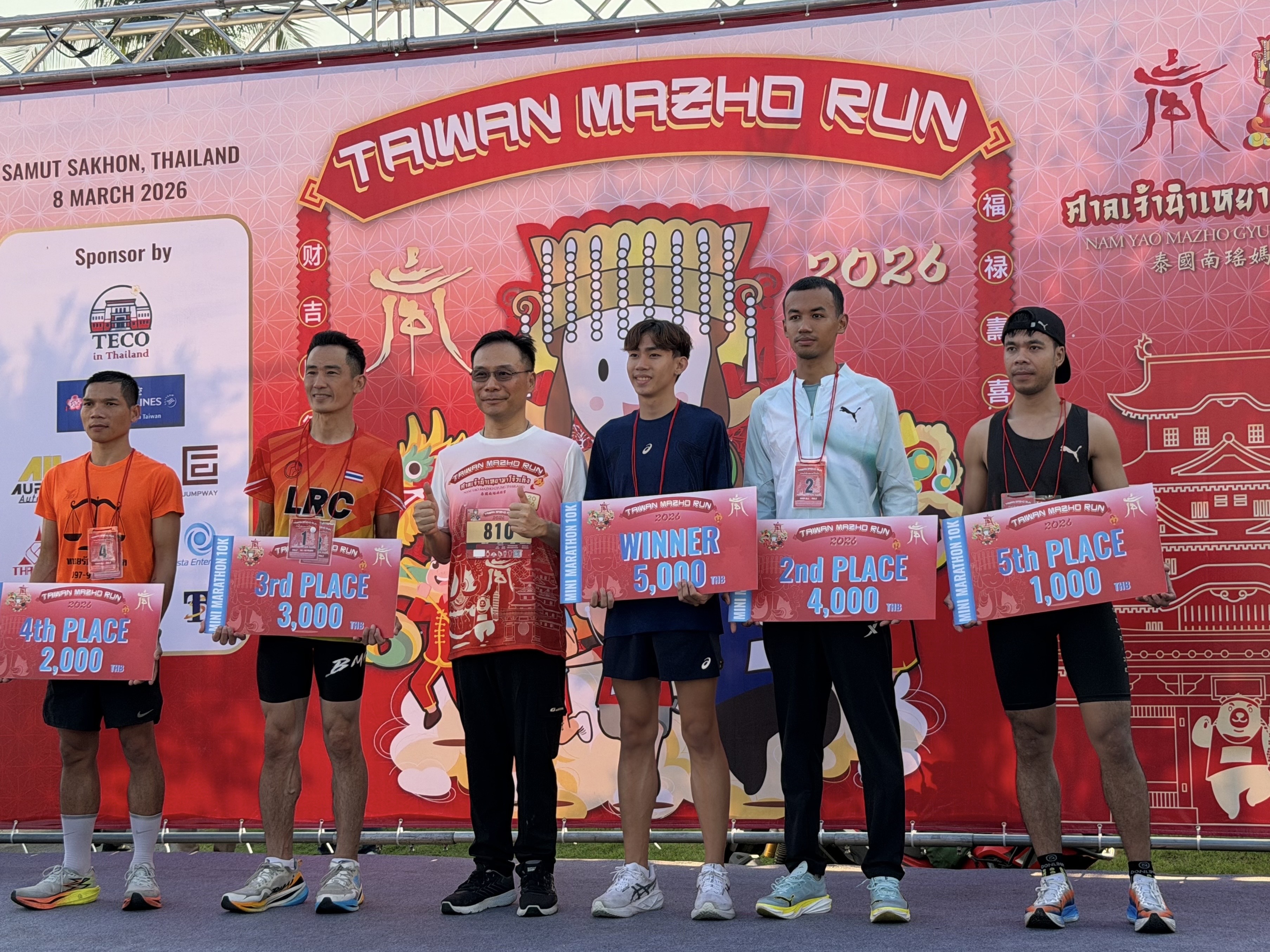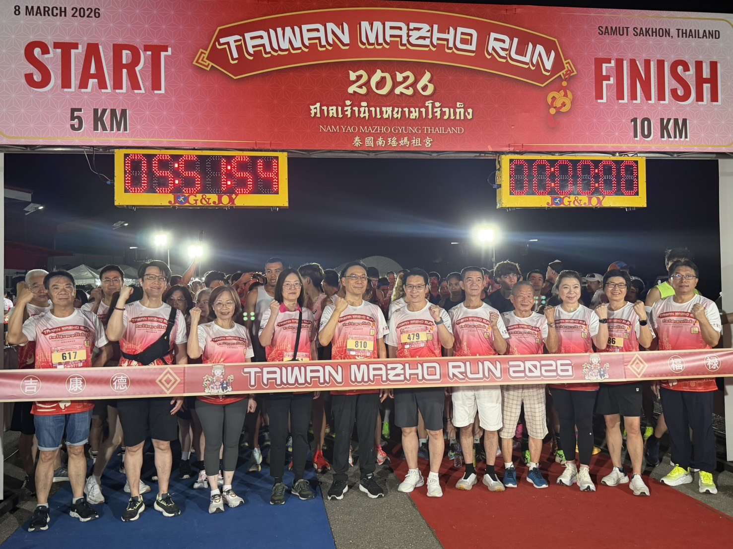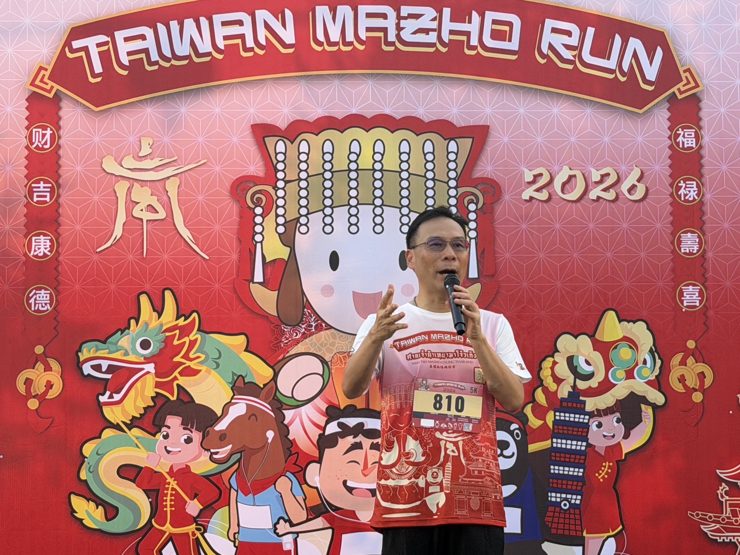 台灣駐泰代表處藍夏禮大使致詞表示,媽祖信仰在華人社會具有深厚歷史與文化意義,也象徵守護與平安。此次路跑活動結合信仰與運動,不僅促進健康生活,也讓更多泰國朋友認識台灣文化。