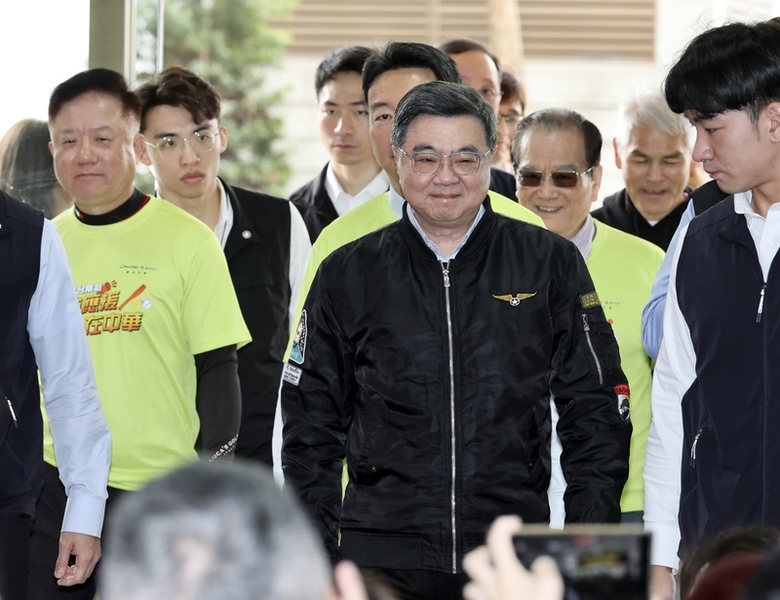 行政院長卓榮泰(前中)8日在台北受訪表示,7日休假去日本東京為WBC台灣隊加油,是自費且私人的活動,唯一安排就是與國人一起為Team Taiwan加油,沒有其他任何目的。(中央社記者張皓安攝)