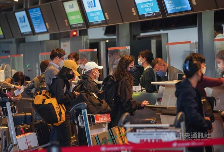 圖為台北松山機場赴日旅客辦理報到手續。(中央社檔案照片)