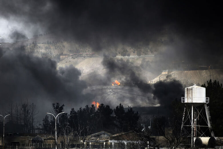 美國及以色列8日對伊朗德黑蘭石油儲存設施發動攻擊,現場燃起大火。(安納杜魯新聞社)