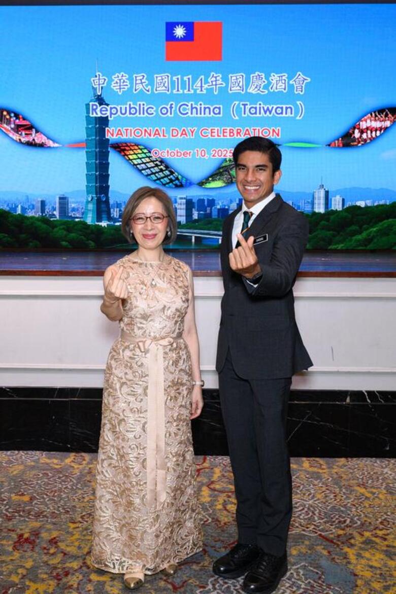 雙十國慶將至,駐馬來西亞代表處7日舉辦國慶酒會。圖為駐馬來西亞代表葉非比(左)與馬來西亞國會議員賽沙迪(右)合影。(駐馬來西亞代表處提供,中央社記者吳昇鴻新加坡傳真)