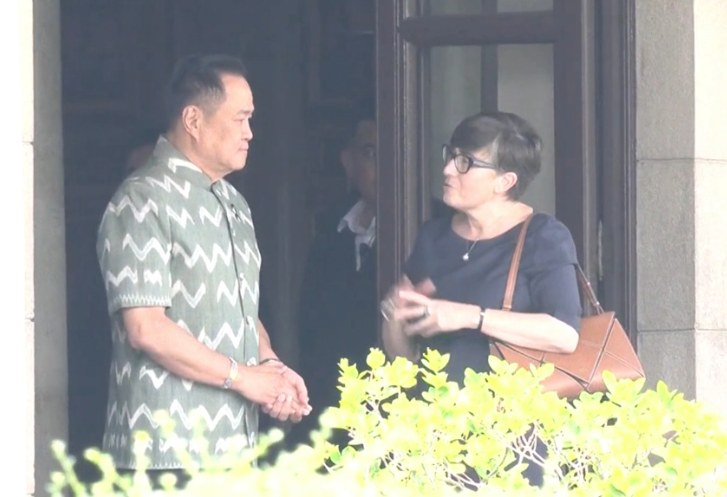 (台泰時報3月12日電)泰國總理阿努廷(Anutin Charnvirakul)11日在曼谷政府大樓與澳洲駐泰國大使安吉拉.麥克唐納(Angela Macdonald)共進午餐並進行會談,整個會面歷時約1小時。外界推測,雙方討論的議題可能與近期中東衝突升溫背景下的石油供應與能源貿易合作有關。