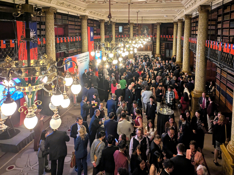 駐英國代表處7日晚間在倫敦市中心舉行國慶酒會,約300位賓客出席。(中央社記者陳韻聿倫敦攝)