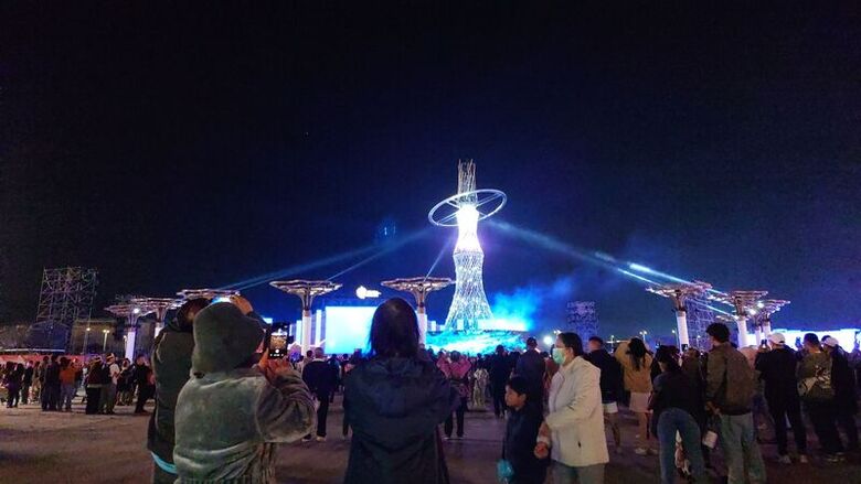 台灣燈會今晚湧入滿滿人潮觀賞壓軸登場的無人機科技燈光秀,1000架MIT無人機同步升空,以「嘉義.台灣」為核心意象,在璀璨光影中勾勒出嘉義產業轉型與城市發展的願景,為期近2週的燈會活動劃下精彩句點。