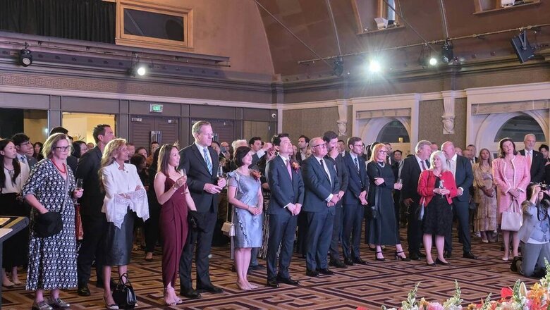 駐雪梨辦事處8日晚間在富勒頓旅館舉行中華民國114年國慶酒會,吸引澳洲新南威爾斯州(NSW)朝野政要、領事團、僑界領袖、企業代表、藝文界及媒體人士等350餘人蒞臨祝賀。(駐雪梨辦事處提供,中央社記者丘德真雪梨傳真)