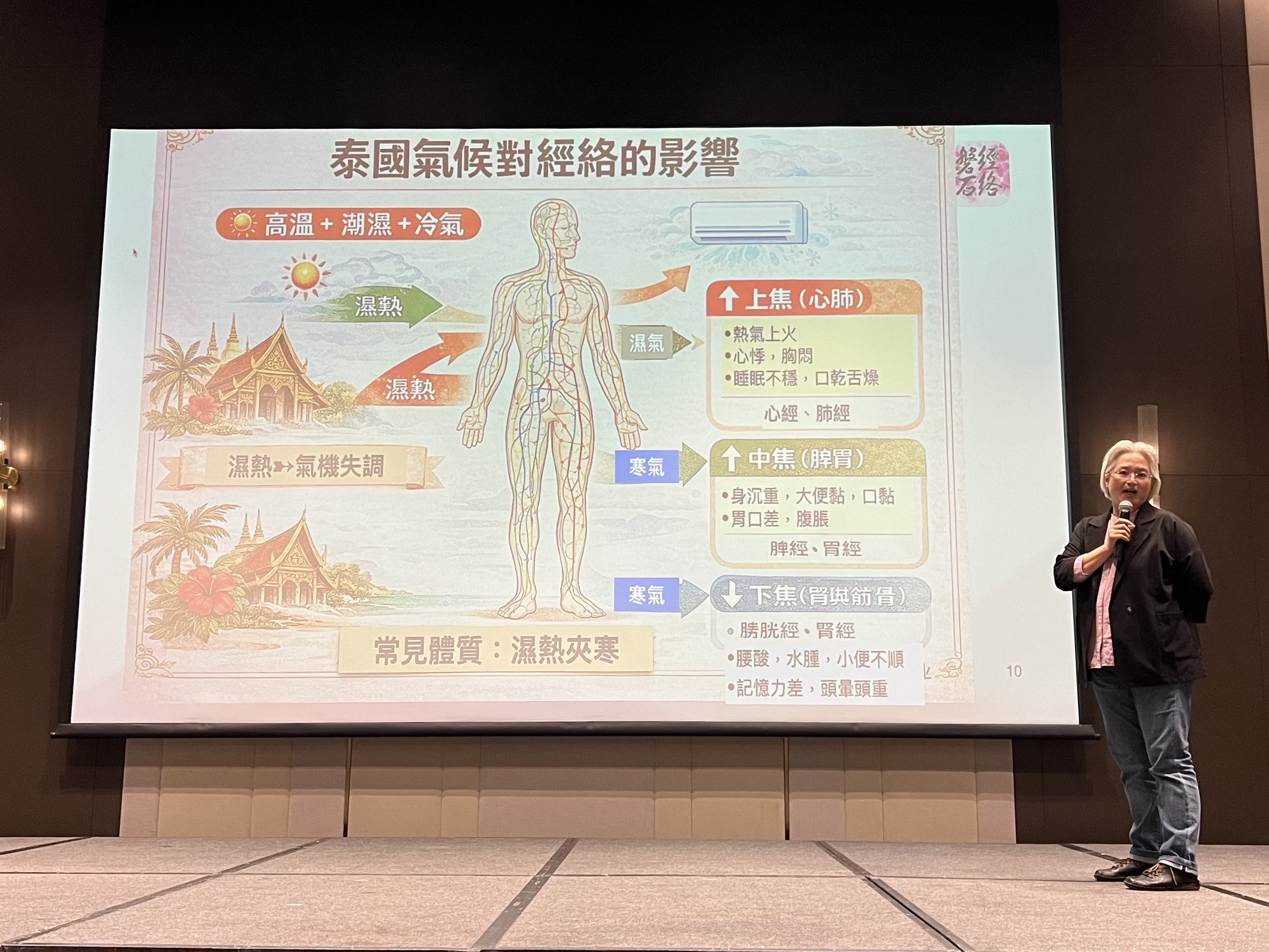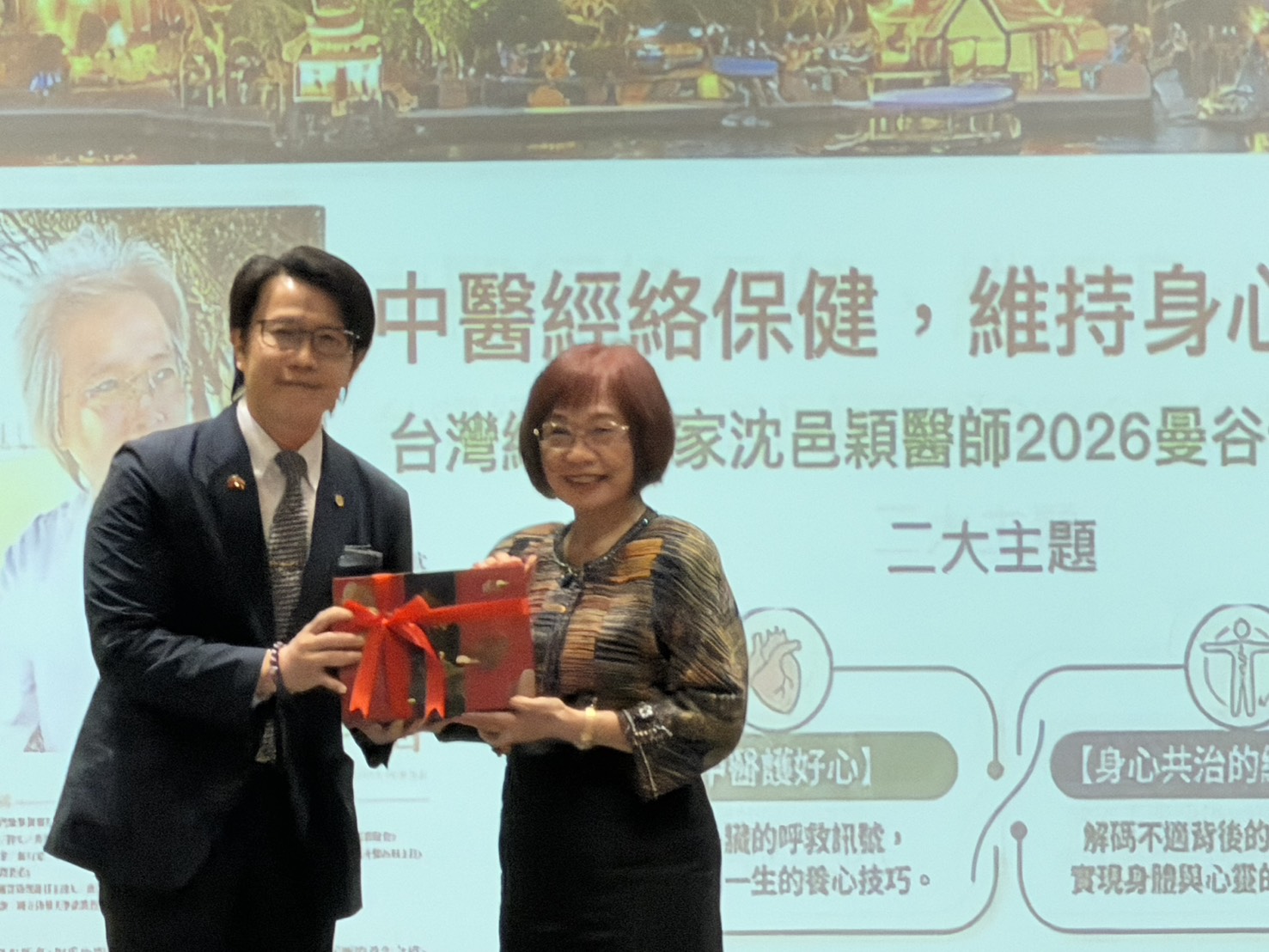 (台泰時報曼谷電)由泰國台灣聖通(金色陽光)慈善基金會、泰國中央集團、泰國北欖台商聯誼會、泰國台商健康交流協會及世界華人工商婦女企管協會泰國分會共同主辦的「中醫經絡保健健康講座」,昨(21)日下午在曼谷 Avani Sukhumvit 舉行。活動以「開啟身心平衡的能量之道」為主題,分別從「中醫護好心」與「身心共振的經絡之道」兩大面向切入,吸引僑界、台商與關心健康議題的民眾到場聆聽,現場互動熱烈。