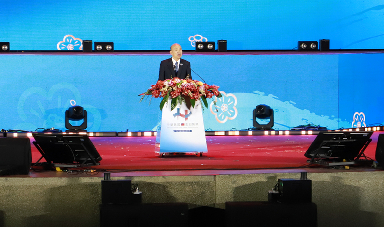 (中央社記者台中9日電)國慶晚會今天在台中市登場,國慶大會籌備委員會主任委員韓國瑜及台中市長盧秀燕等感謝僑胞關心花蓮縣災情,發揮人飢己飢、人溺己溺情操,大家心中有台灣。