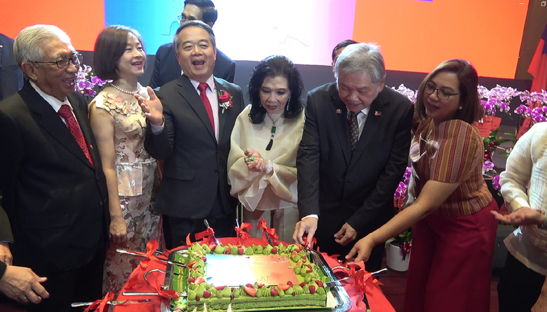 周民淦與貴賓們向全場人士祝酒之後,一起切蛋糕,祝福中華民國國運昌隆,台菲友誼更緊密。