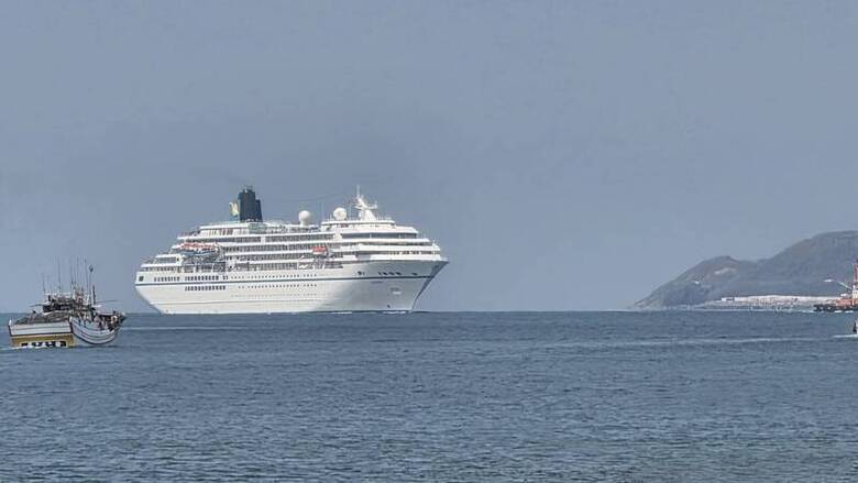 澎湖縣政府表示,2萬9000噸的「阿曼達號」是今年3 月21日自日本那霸出發、駛抵基隆港後,23日再由基隆駛往澎湖,500多名歐美遊客,24日將以自由行方式暢遊澎湖北環各遊憩景點,晚間8時再駛往香港。
