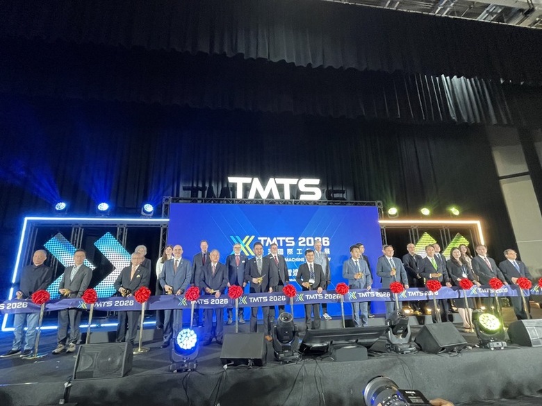 2026台灣國際工具機展25日在台中舉行開幕典禮,主辦單位台灣工具機暨零組件工業同業公會表示,超過400家廠商使用超過1800個攤位,將吸引超過7萬名國內外專業人士參觀。 (中央社記者鍾榮峰攝)