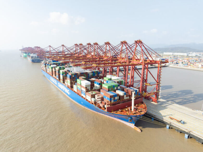 美國27日指控中國以港口國監督為由,大舉扣押停靠中國港口的巴拿馬籍船舶。圖為中國寧波舟山港貨櫃碼頭。(中新社)