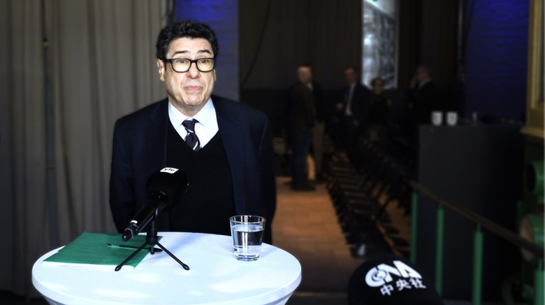 2025年諾貝爾經濟學獎得主阿吉翁接受中央社訪問。(中央社記者巫祈麟赫爾辛基攝)