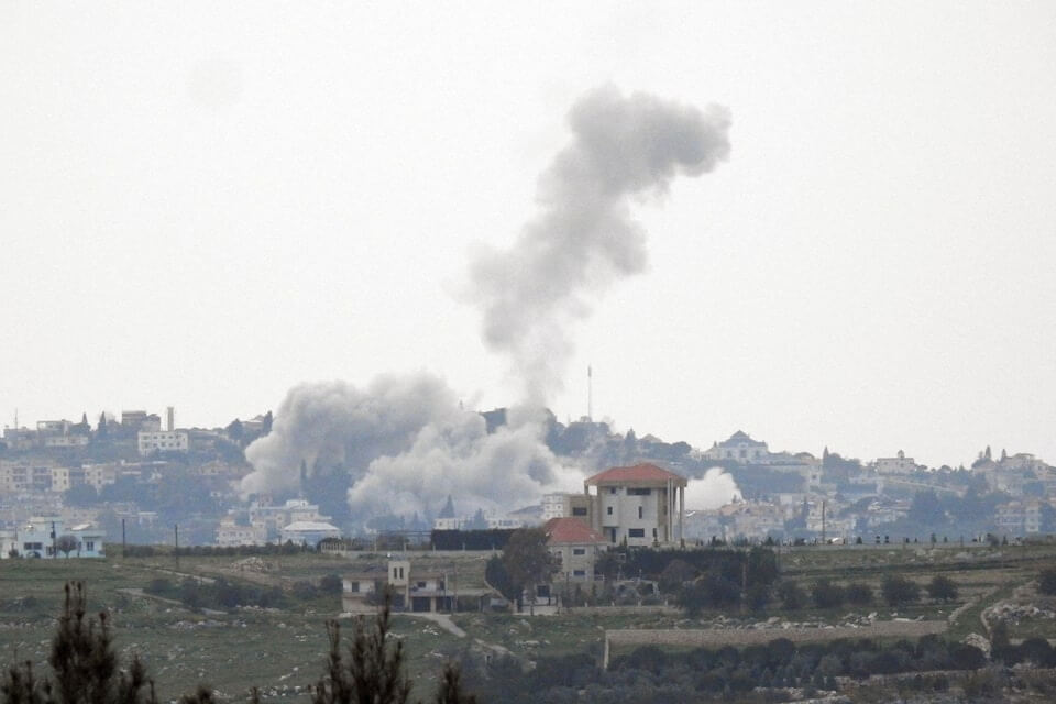 以色列28日空襲黎巴嫩南部後濃煙升起。(路透社)