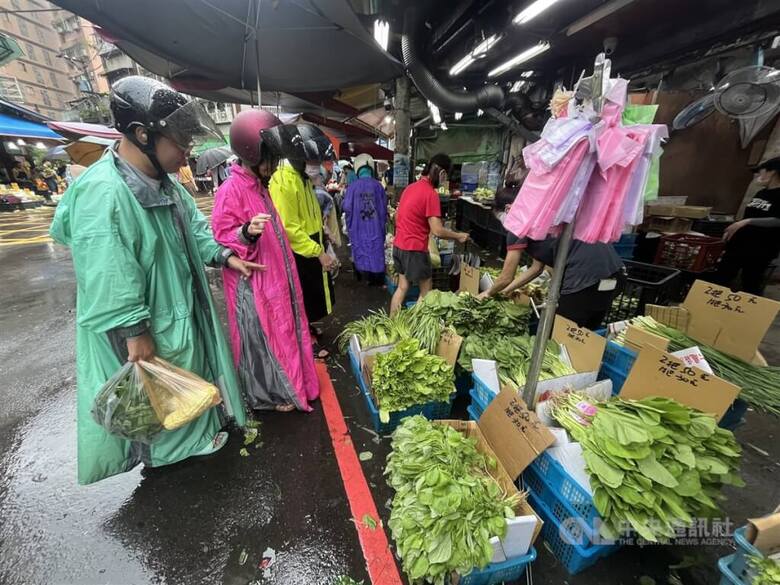 圖為民眾到北投市場採買,攤商架上掛著塑膠袋。(中央社檔案照片)