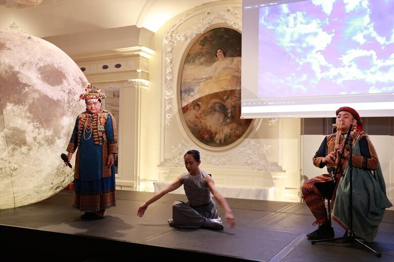 今年瑞士代表處特別從台灣邀請「月亮上的台灣」(TAIWAN on the Moon)團隊,包括策展人林育世、舞者黃雅美、魯凱族演奏家蔡清安、攝影師蔡子琪,以及榮獲金曲獎以及美國葛萊美獎等多項國內外大獎肯定的排灣族原音歌后桑梅絹,親身來到瑞士國慶酒會現場演出,發表詩作「窺月」,展現台灣文化魅力,台灣溫暖堅定的力量,如同月光一般照亮世界,為國際社會做出一份貢獻。